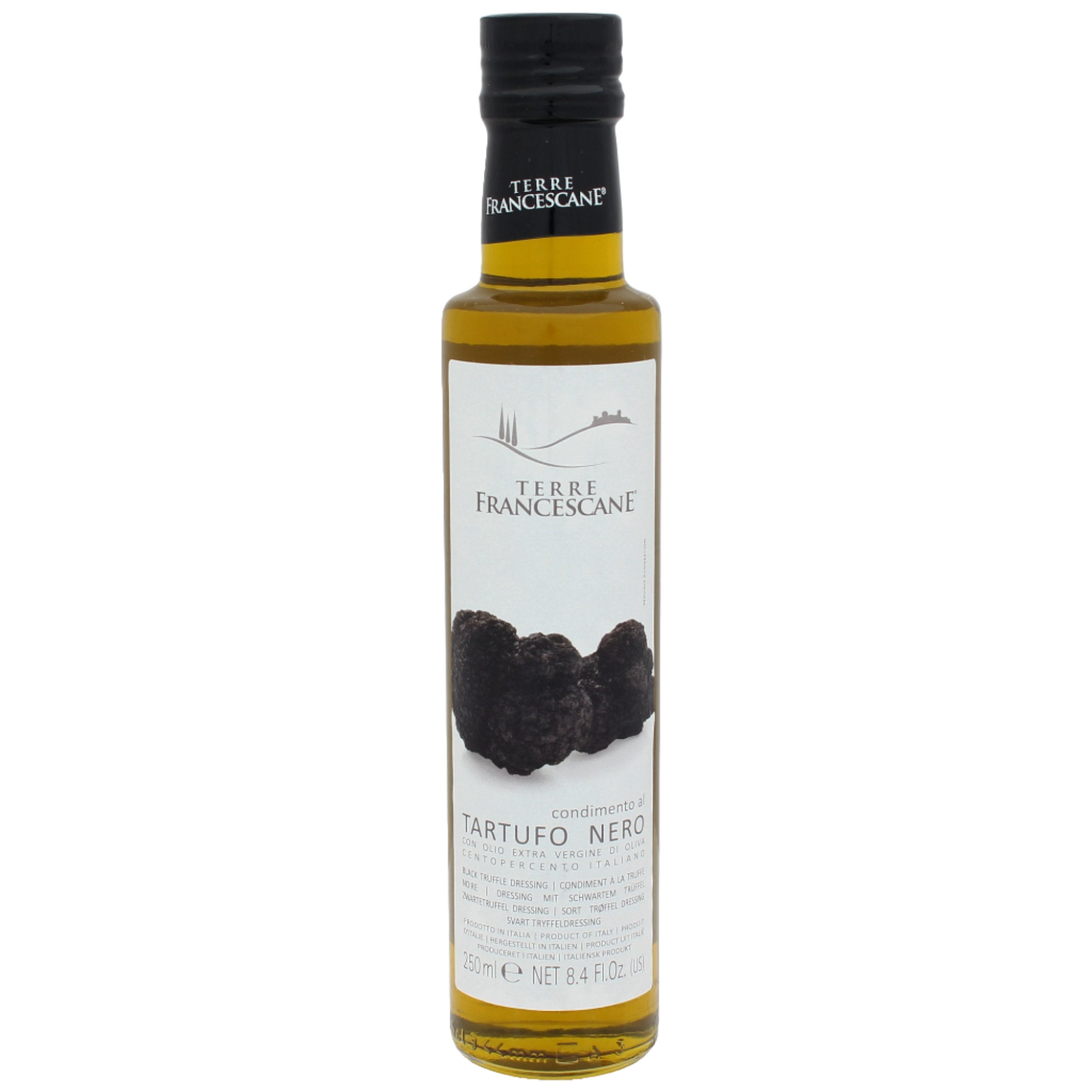 This Italian prized black truffle flavored extra virgin oil is fragrant and luxurious. Enrich any dish such as meat, omelettes or risotto with this naturally infused Italian oil. Beautifully presented in an attractive 8.5 ounce bottle, this infused oil provides the chef the ability to impart exquisite flavor. Terre Francescane is the new brand of C.U.FR.OL. - scrupulous in clearly differentiating various oils based on their geographical provenance and hence taste.