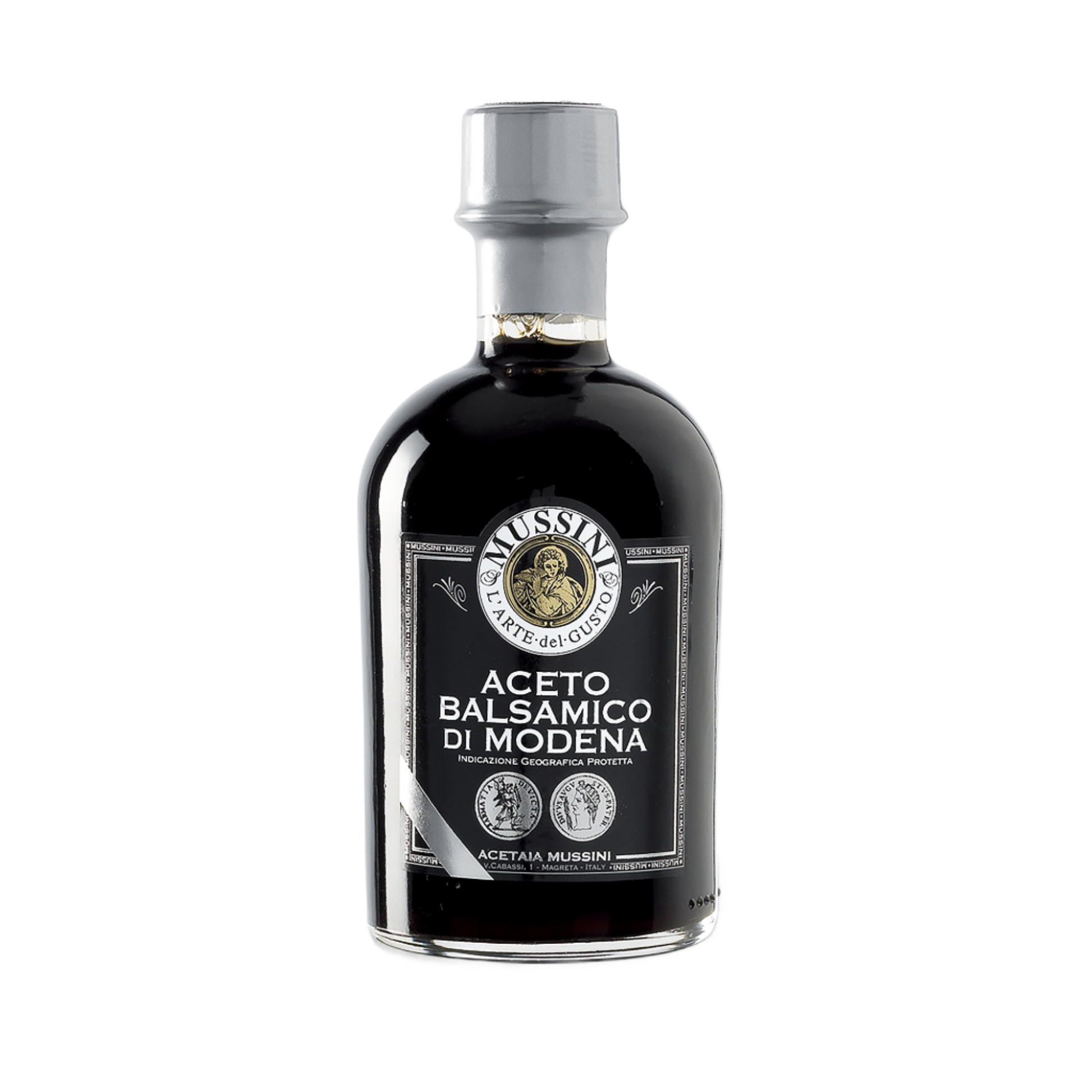 Six year aged Mussini Italian balsamic vinegar is an enhancement in taste and quality for dressing salads, vegetables (raw or cooked) and for meat and poultry. Considered to be in the mid-range of quality and cost of the Mussini line, it offers the chef an opportunity to experience the true benefits of aged balsamic vinegar. It is recognized as an IGP (Indicazione Geografica Protetta translated as Protected Geographical Indication) balsamic vinegar of Modena, guaranteeing a true authentically aged balsamic vinegar.