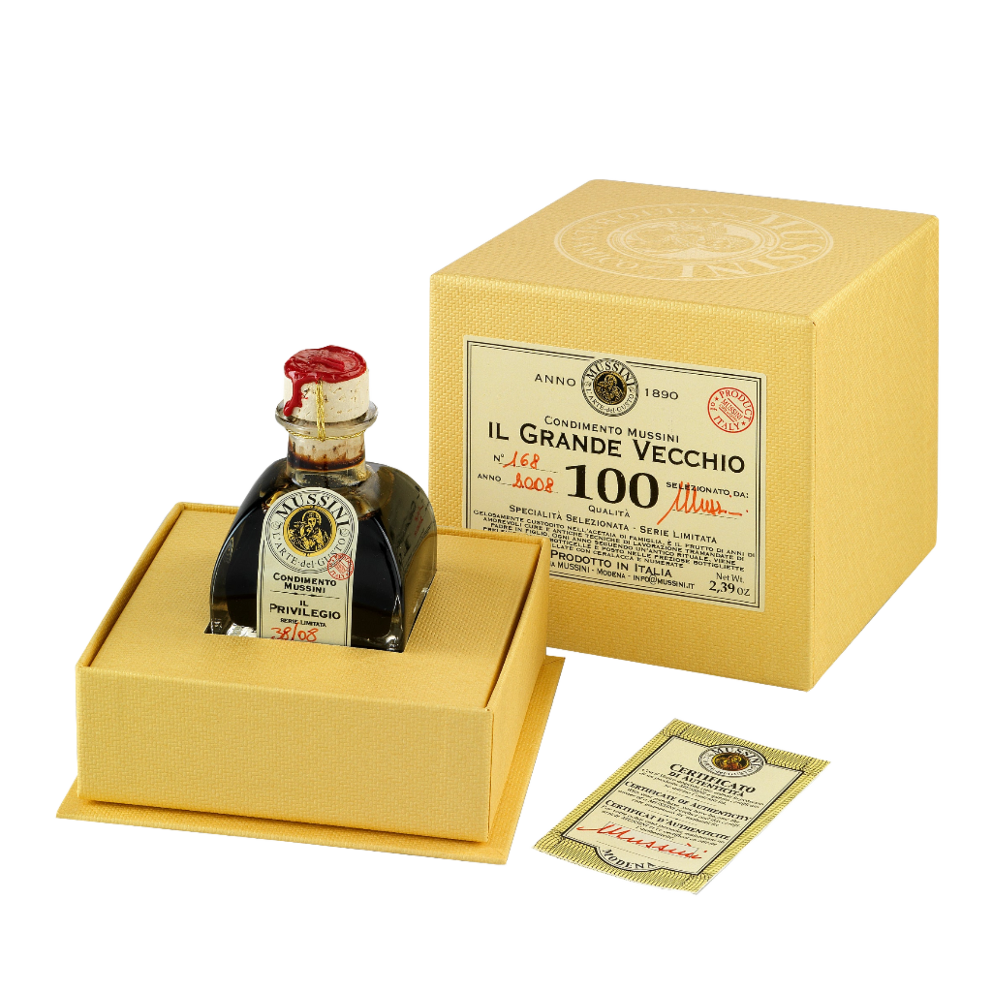 This 100 year selection is the most prestigious of the "Cubo" line and is produced in the true traditional sense. A perfect addition to parmesan cheese, ice cream, strawberries, fruit and green salads. This is one of Mussini's truly fantastic products. Each drop gives a true flavor and history of Italian balsamic vinegar. The finest quality and packaged in modern Italian design, the "Cubo" line offers an enriching experience to the most refined connoisseur. An amazing gift.