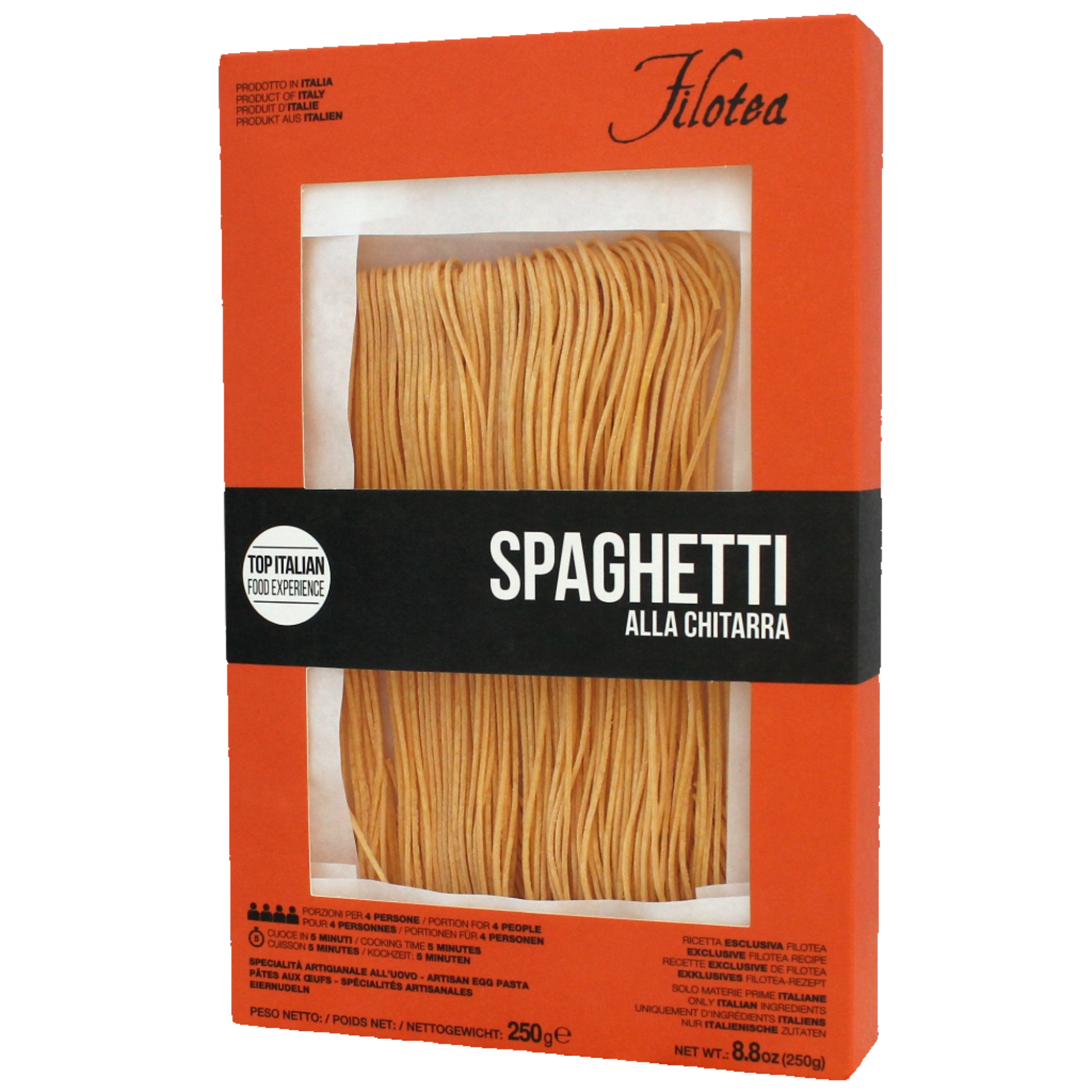 Using an ancient recipe from Marche, Filotea pasta is made from the freshest eggs and finest flour (including durum wheat semolina). The artisan manufacturing results in a pasta that is incredibly light and easy to digest, with a textured surface that helps absorb any sauce, thus exalting the flavour of all the ingredients in your recipe.